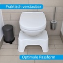Pogrubione zakończenia nóg zapewniają podnóżkowi właściwą stabilność. Stołek toaletowy ma za zadanie ułatwiać zajęcie na sedesie właściwej pozycji.