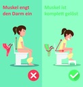 Podczas korzystania ze stołka jelito otwiera się całkowicie za sprawą zmiany kąta. Dzięki temu możliwe jest pełne opróżnienie jelit i znaczne skrócenie wizyt w toalecie.