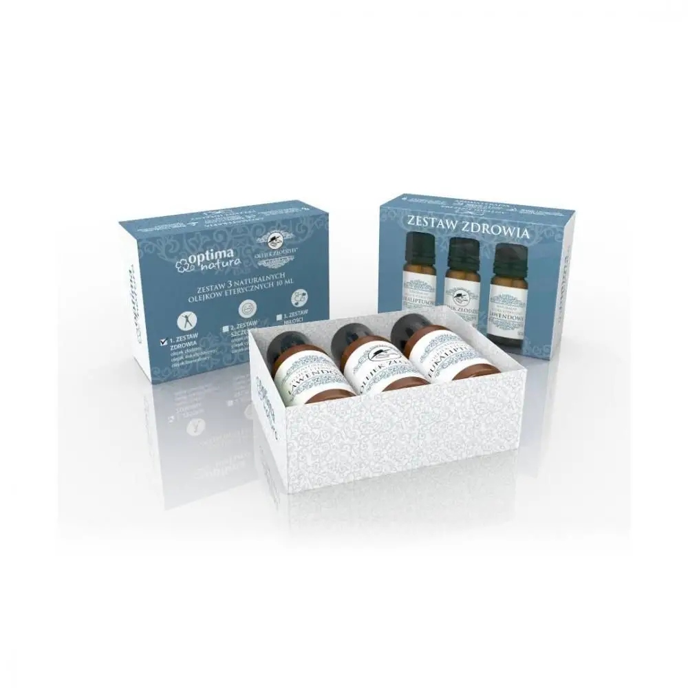 Zestaw zdrowia to 3 najbardziej popularne w 100% naturalne olejki do aromaterapii, zapakowane w etstetyczne pudełeczko nadajace sie doskonale na prezent.