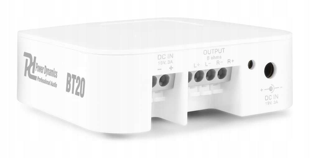 Power Dynamics BT20 to miniwzmacniacz stereo z Bluetooth i odtwarzaczem MP3. Dzięki nowoczesnemu wzmacniaczowi klasy D, BT20 pomimo swoich rozmiarów ma moc RMS 2x 30W. Wzmacniacz dzięki swoim kompaktowym rozmiarom może być wykorzystany do budowy dyskretnej instalacji audio. Dzięki temu BT20 może być używany wielofunkcyjnie w domu, biurze itp.
