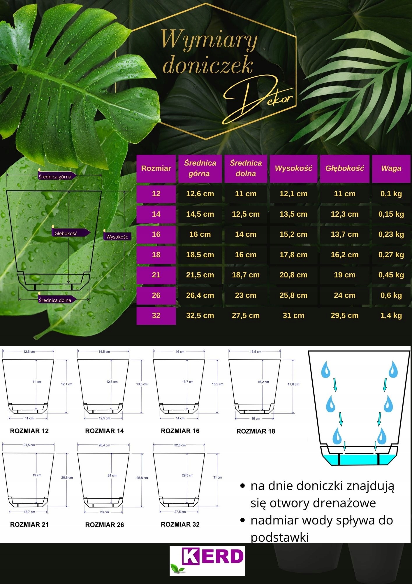 Wymiary doniczki DEKOR rozmiar 18