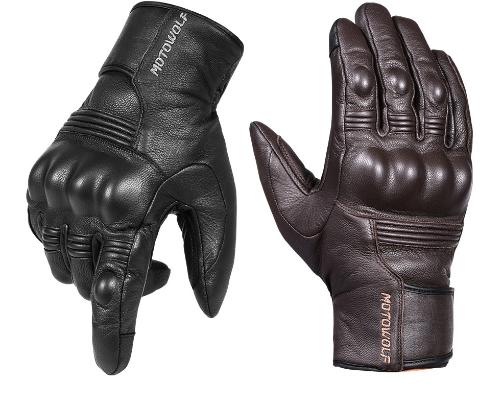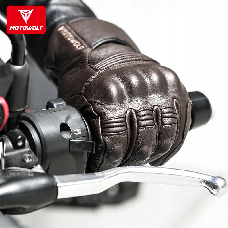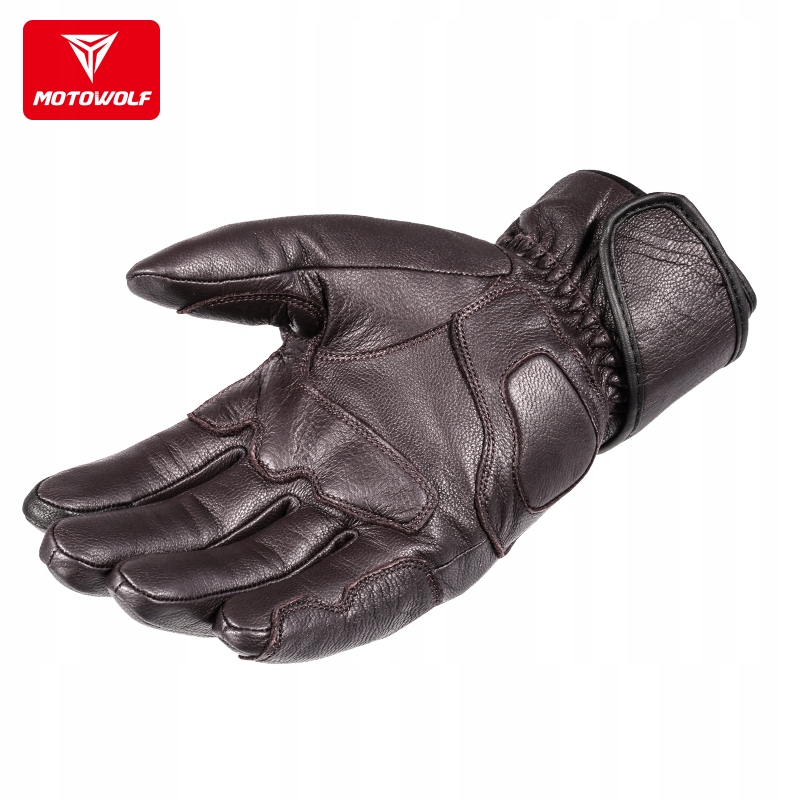 Rękawice MOTOWOLF są niezwykle lekkie i wygodne. Największą ich zaletą dzięki specjalnej powłoce jest możliwość obsługi telefonu palcem wskazującym. Rękawiczki zapinane są na rzep dzięki czemu ich zakładanie jest szybkie i wygodne. Idealnie dopasowują się do kształtu dłoni. Rękawice posiadają eleganckie osłony kostek i palców przykryte skórą dla lepszej estetyki i jednolitości. Wykonane są ze skóry. Starannie wykonane poszycia nie uwierają i nie przeszkadzają podczas jazdy. Przyjemna w dotyku wyściółka o właściwościach termicznych gwarantuje wygodne zakładanie i zdejmowanie, a także doskonale chroni przed zimnem. Można ich używać zarówno do jazdy na motocyklu jak również do biegania, chodzenia po górach, jazdy konnej, strzelectwa czy innych zajęć na świeżym powietrzu.