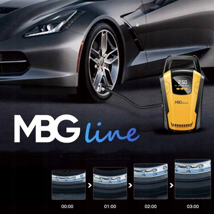 Kompresor samochodowy MBG line 3650 jest przenośnym urządzeniem, którym dzięki wymiennym końcówką w zestawie łatwo napompujesz opony samochodu, rowera lub hulajnogi, a również takie przedmioty jak piłki, materace.