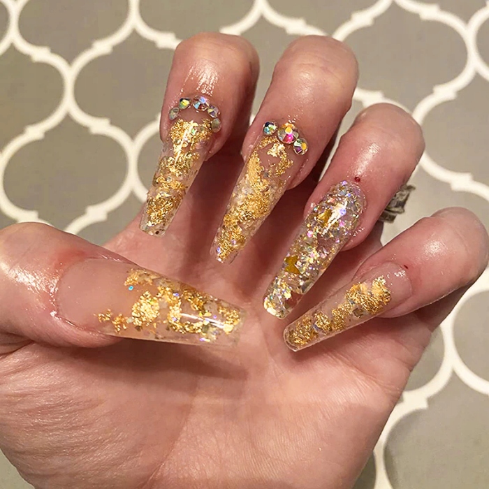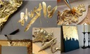 Золотые лепестки приклеиваются клеем для позолоты. Затем после при высыхании излишки фольги следует удалить мягкой кистью. Золоченая поверхность также должна быть разгладьте кистью.