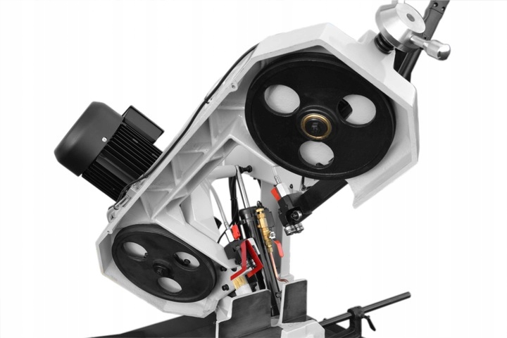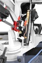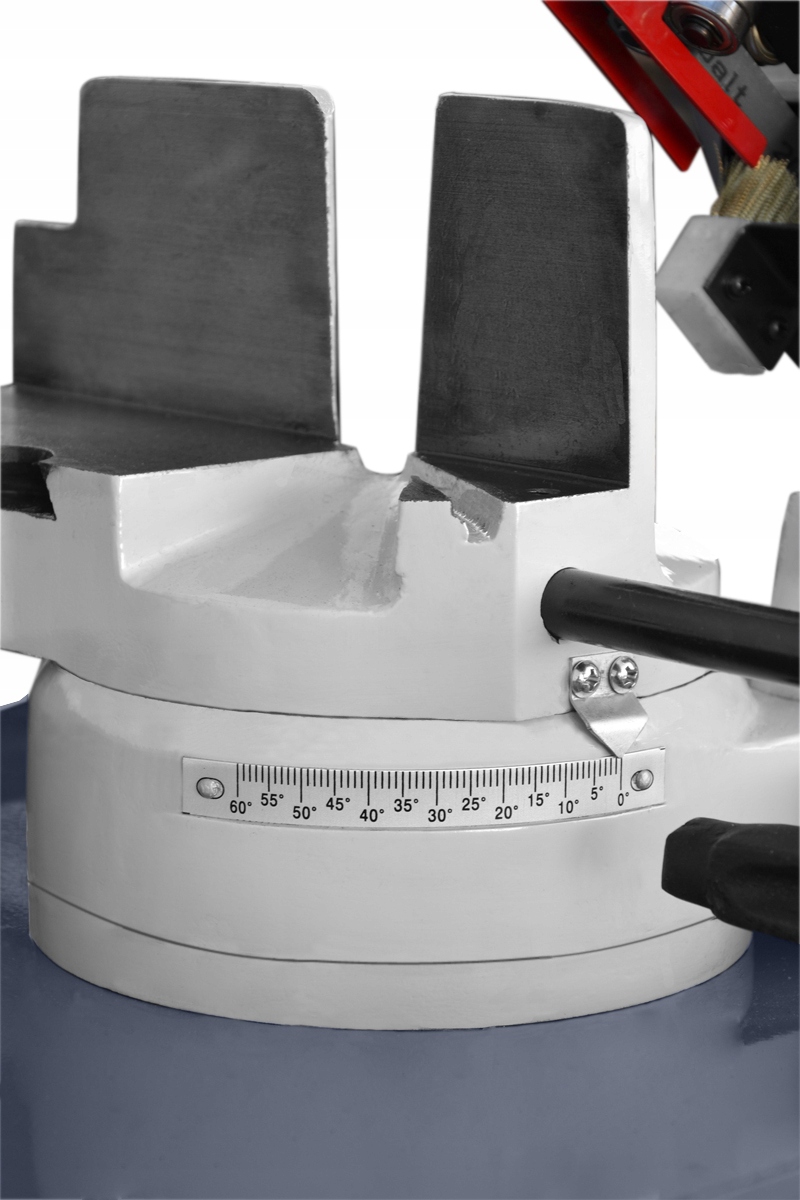 Ленточный резак для металла, горизонтальный с поворотным рычагом позволяет пересечение в плоскости, перпендикулярной оси пересекаемого материала, и под любым углом в диапазон от 0 до 60°.