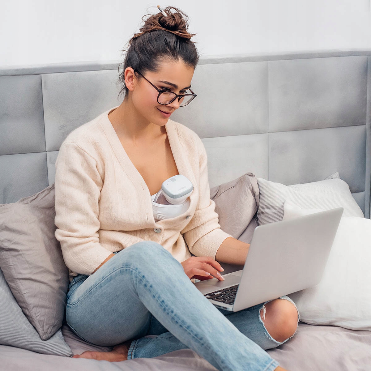 Innowacyjny design laktatora pozwoli Ci na jednoczesne odciąganie pokarmu i wykonywanie innych czynności w tym samym czasie.