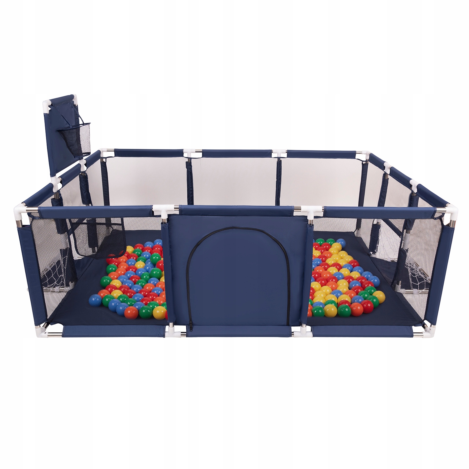Składany kojec z plastikowymi piłkami w kształcie mini-boiska zapewni Twojemu dziecku godziny zabawy. Wewnątrz jest wystarczajaco dużo przestrzeni, aby w zabawie mogło uczestniczyć swobodnie kilkoro dzieci. Jednocześnie kojec można w łatwy sposób złożyć, dzięki czemu można go schować, lub zabrać ze sobą na wczasy, piknik, czy do znajomych. Jedna ze ścianek jest wyposażona w siatkowy kosz do koszykówki, a druga w bramkę do piłki nożnej. Dzięki temu dzieci mogą zacząć karierę w grach zespołowych.