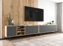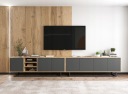 Dwie wiszące szafki RTV w stylu Loft z kolekcji APOLLO, idealnie nadają się pod telewizor oraz pasują do każdego wnętrza. Umieszczone obok siebie tworzą jeden długi, bardzo ładnie prezentujący się mebel. Posiadają cztery zamykane komory z podziałem na dwa poziomy i jedną komorę otwartą- trzypoziomową. Wygodny system "push to open" do otwierania drzwiczek.