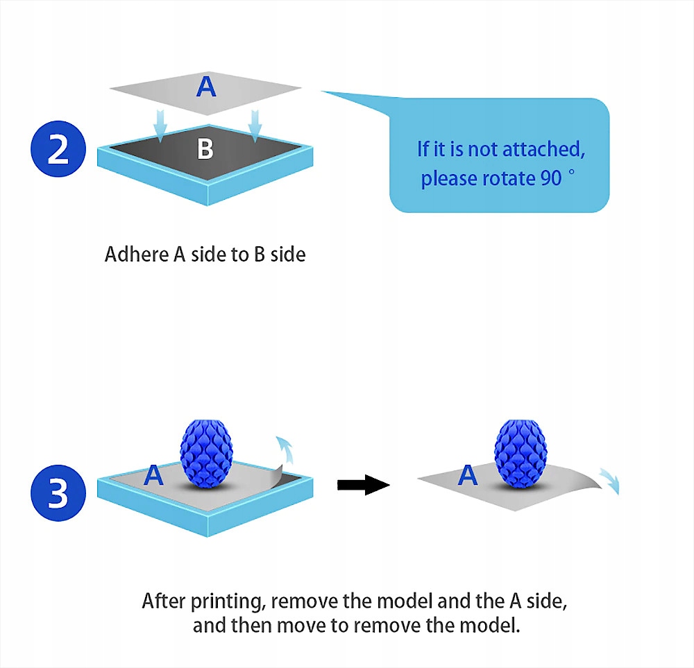 * Uniwersalność zastosowań: można go zainstalować na gorących łóżkach i szklanych platformach. Druk nie wypacza się. Nie jest wymagany klej. Można drukować na zimnym łóżku. Płytka A jest elastyczna i magnetyczna, co ułatwia zdjęcie jej z platformy i zabranie wydrukowanego modelu. Demonstrują to ostatnie zdjęcia w ofercie.