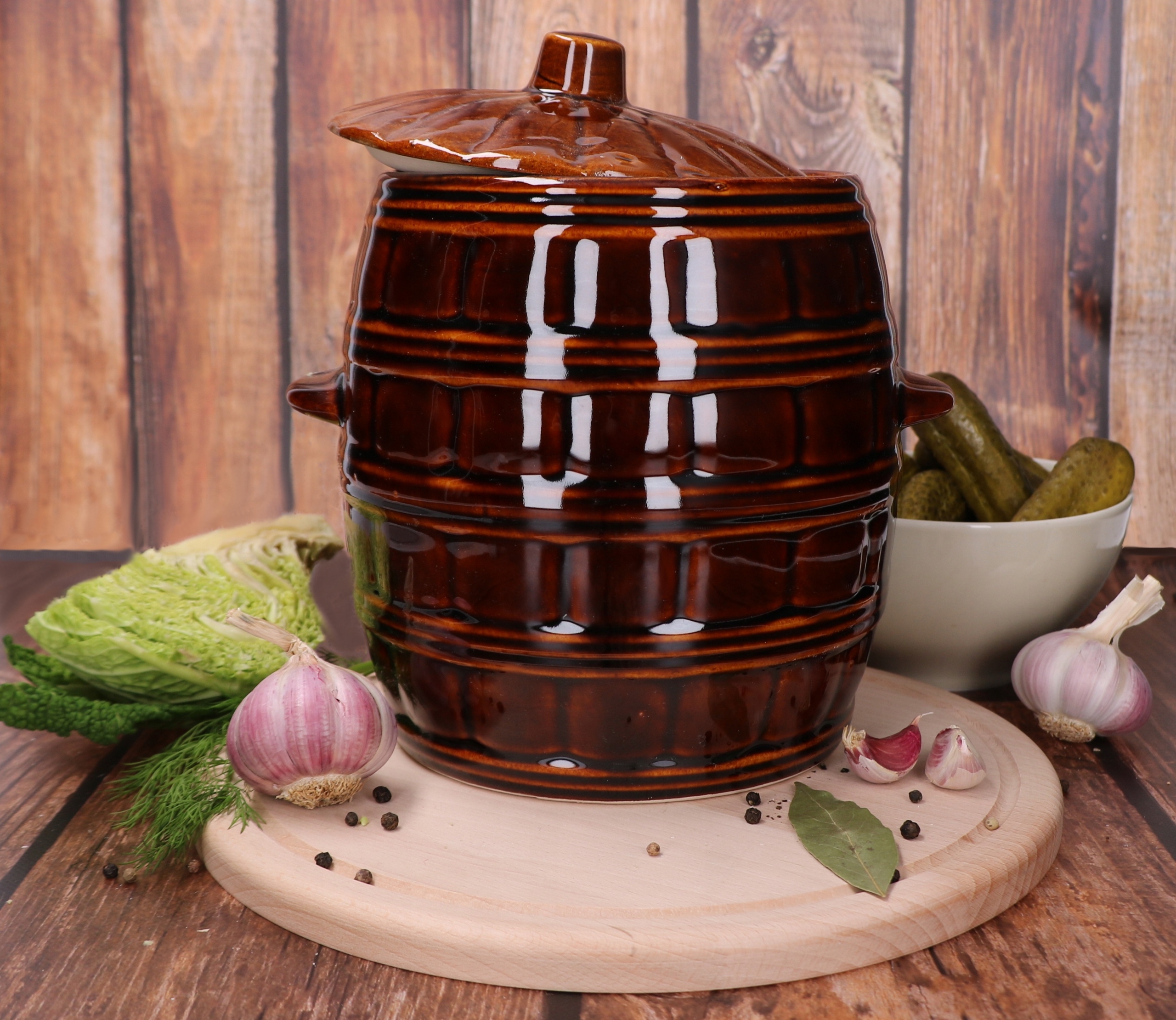 Wielofunkcyjne naczynie KOTARBAU przyda się w każdej kuchni. Idealne do przechowywania smalcu i kiszonek. Tradycyjny wygląd sprawia, że wpasuje się w większość wnętrz nie tylko domów, ale także restauracji. Beczka ceramiczna Kotarbau jest odporna na kwasy, więc szczególnie sprawdzi się do przygotowywania kiszonych ogórków, kapusty, czy marynowania pieczarek.