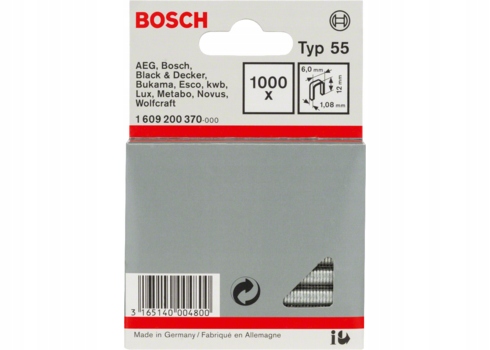 Zszywki TYP 55 firmy BOSCH zapewniają wyjątkowe mocne połączenia. Nadają się szczególnie do zastosowań, w których grzbiet zszywki nie może być wciśnięty w materiał.