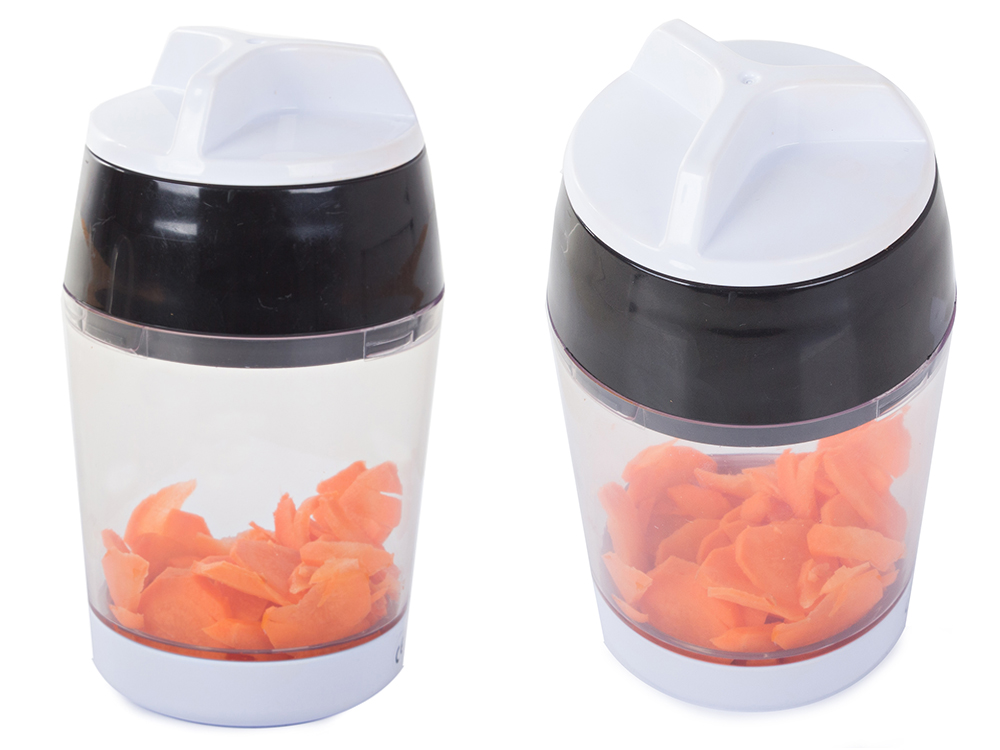 Szatkownica wyposażona jest w funkconalny pojemniczek o pojemności 400ml, w którym można przechować sporządzoną sałatkę