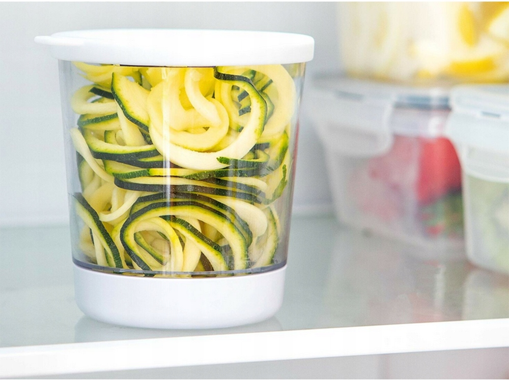 Ręczny siekacz do warzyw to idealne urządzenie do tworzenia makaronu warzywnego, smacznej i zdrowej alternatywy dla tradycyjnego makaronu z mąki. Możemy również tworzyć pyszne spirale do sałatek oraz dodatki do wszelakich dań.