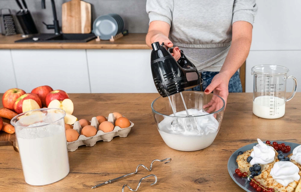 Ciasto, krem czy bita śmietana? A może naleśniki? Z pomocą miksera GÖTZE & JENSEN HM350K szybko przygotujesz wszystko, na co masz ochotę. Łatwo przygotujesz nie tylko ciasta czy desery, możesz miksować też pyszne sosy czy dipy. Mimo swoich niewielkich rozmiarów mikser zaskoczy Cię swoją wysoką wydajnością.