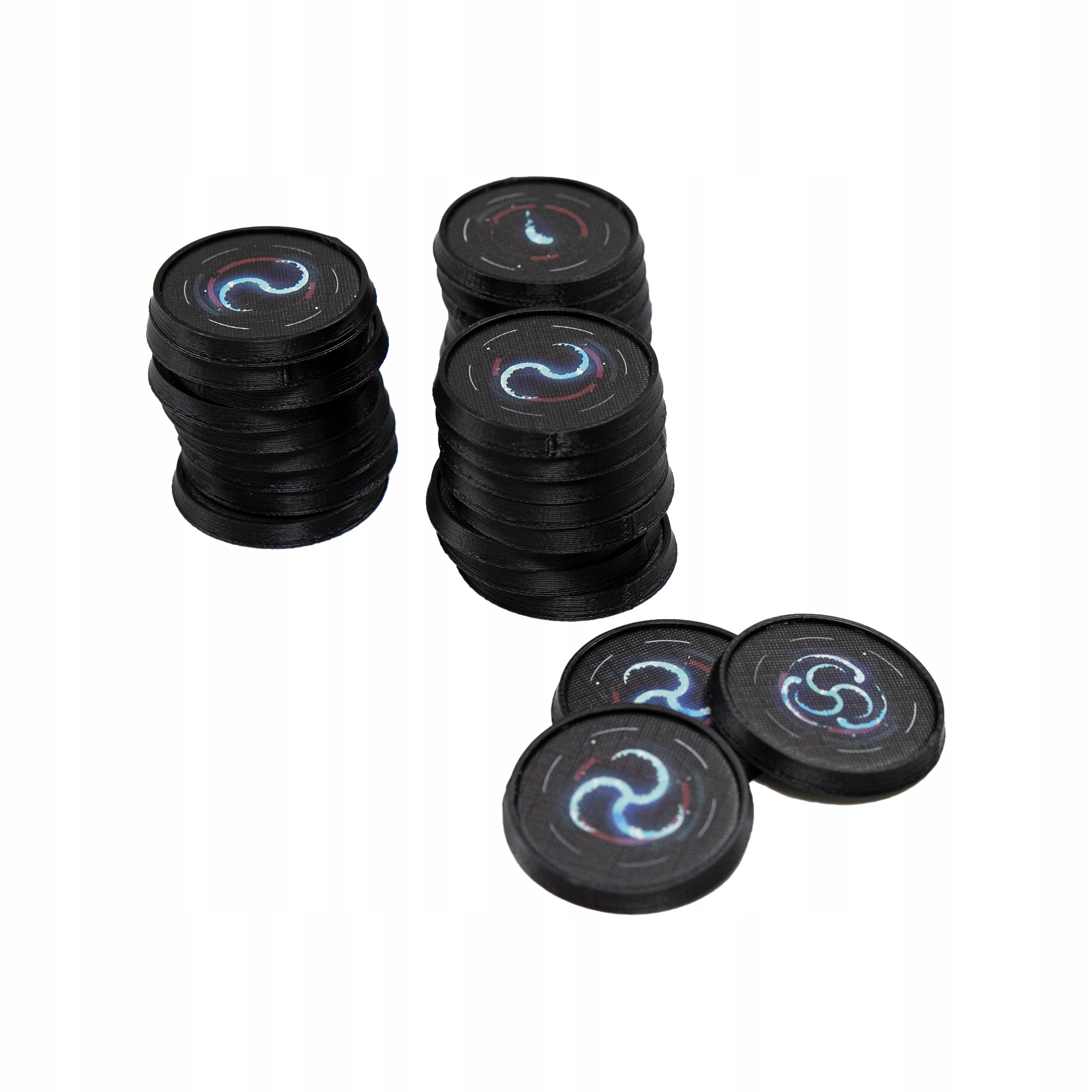 Żetony w osłonkach mieszczą się w oryginalnej wyprasce.
