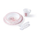 Plastikowy zestaw naczyń jest polecany dla dzieci powyżej 1 roku życia i zawiera: