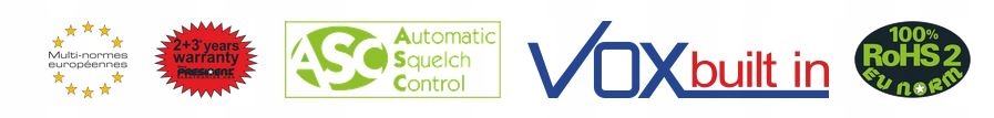 Radio multistandardowe, może pracować w każdym kraju Europy.W radiu zaprogramowane zostały odpowiednie standardy dla krajów Europy , pozwala to szybko dostosować parametry pracy radia do obowiązujących w danym kraju.Radio może pracować zarówno w modulacji AM jak i FM, która odznacza się znacznie lepszą jakością przekazu i jest przydatna szczególnie gdy rozmawiające stacje są blisko siebie (np. auta jadące w kolumnie). Modulacja FM jest często stosowana w krajach Europy zachodniej. Radio posiada ASC - automatyczne wyciszanie szumów, filtr NB - redukuje zakłócenia pochodzące od silnika oraz od instalacji elektrycznej.