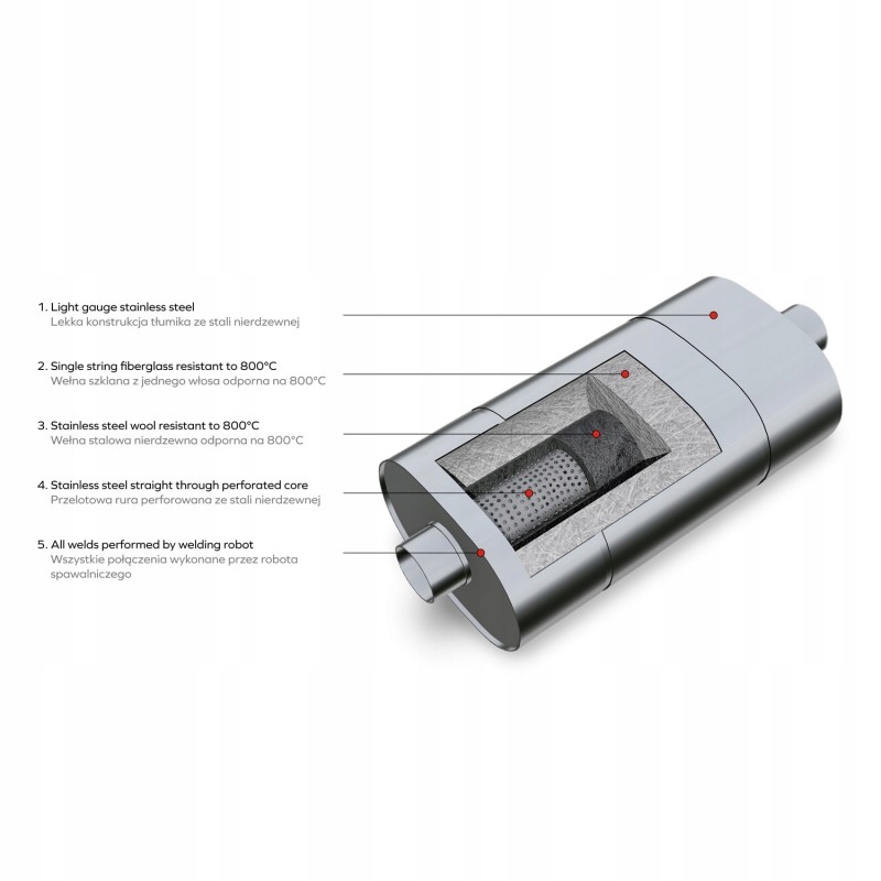 Wnętrze tłumika składa się z: