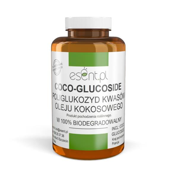 COCO - GLUCOSIDE - niejonowy środek powierzchniowo czynny, pochodzenia roslinnego, w 100% biodegradowalny, pozyskiwany ze skrobi kukurydzianej i oleju kokosowego Wykorzystywany jako emulgator, środek pianotwórczy, czy naturalny detergent. Jest bardzo łagodny dla skóry, nie powoduje podrażnień nawet przy delikatnej cerze.