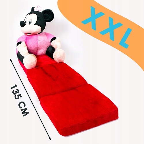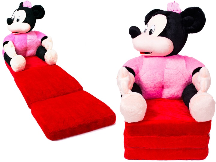 Leżanka z oparciem, rozkładana z różowego pluszu. Myszka Minnie to bohaterka znana na całym świecie teraz w bajkowej odsłonie jako leżanka dla chłopczyka lub dziewczynki wyjątkowo mięciutki i miły w dotyku.