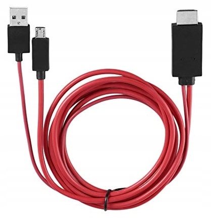 Adapter - kabel MHL z 11 pinowym złączem microUSB pozwalającym na podłączenie telefonu bądź tableta do telewizora czy monitora poprzez złącze HDMI.