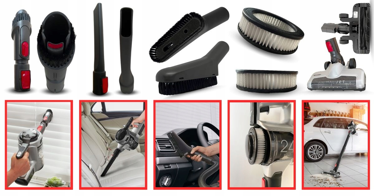 Praktyczny zestaw ssawek wystarczy, by dokładnie sprzątnąć schowki, kratki i wszystkie zakamarki deski rozdzielczej, a także ciasne przestrzenie w fotelach samochodowych i wokół nich. Ssawki sprawdzą się także do usuwania kurzu z kaloryferów, klawiatury komputera czy drukarki. Elastyczne włosie ssawek z łatwością wymiata kurz i pył, które od razu są zasysane przez odkurzacz.