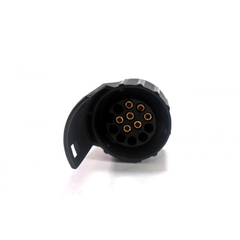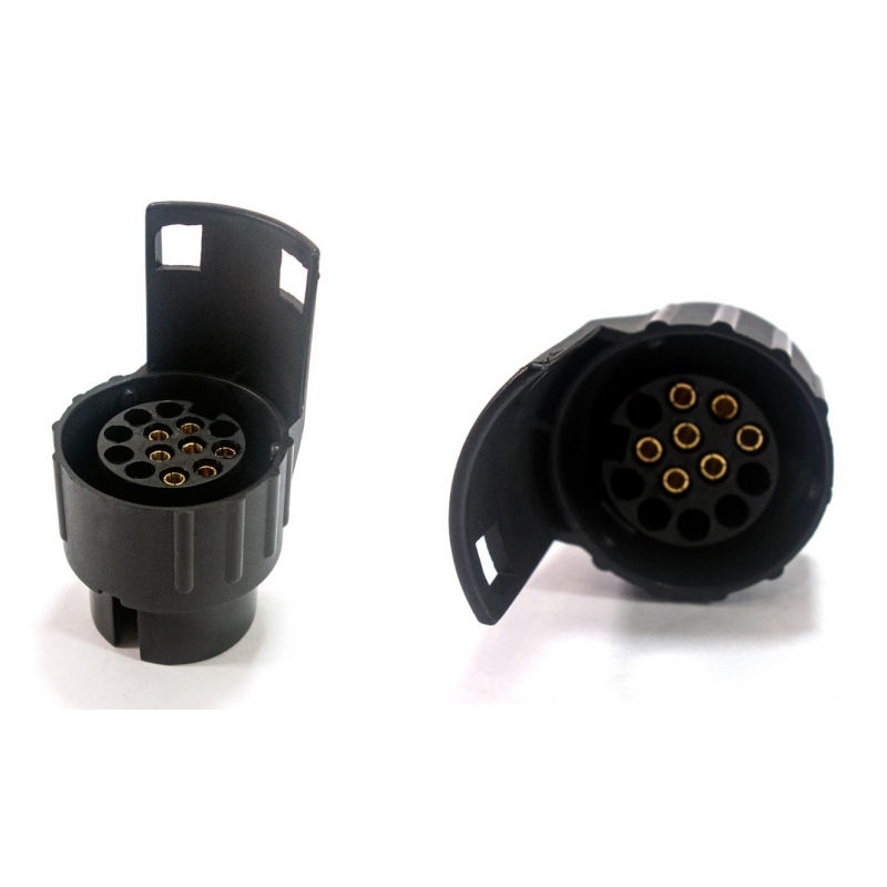 Wysokiej jakości przejściówka umożliwiająca podłączenie pojazdu z wtyczką 7-biegunową (typ polski) do przyczepy z wtyczką 13-biegunową (typ europejski/niemiecki), bez konieczności ingerowania w instalację elektryczną.