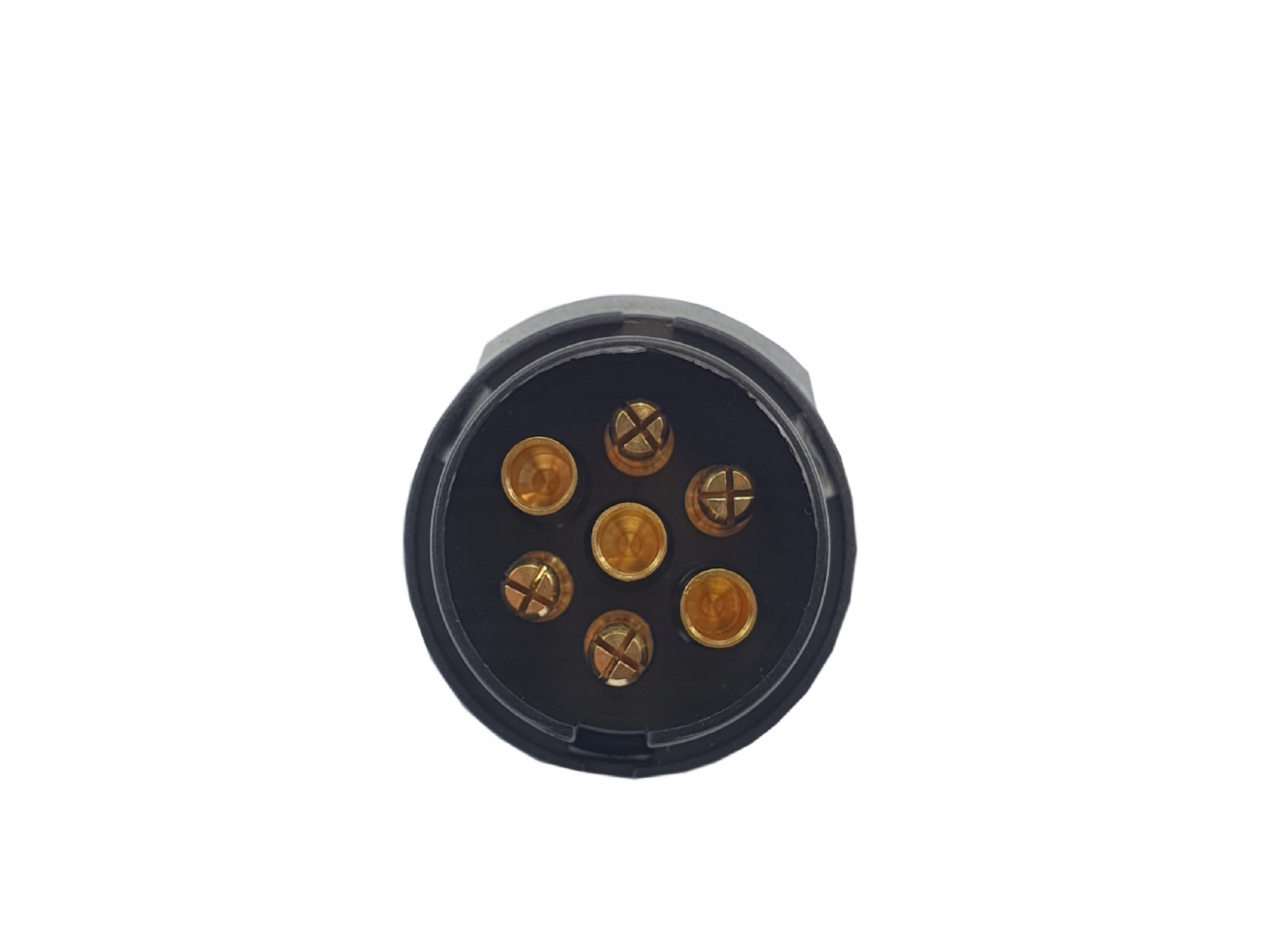 Przejściówka (w kolorze czarnym) wykonana jest z wytrzymałego tworzywa wysokiej jakości z mosiężnymi pinami! Odpornego na działanie czynników atmosferycznych, Przeznaczony do zasilania 12V, 7/ 13 - wtykowy,