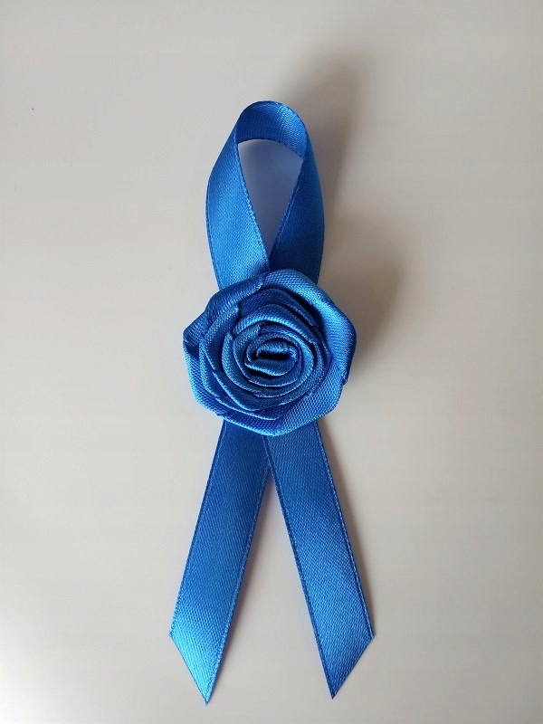 Przypinka wykonana jest z satynowej tasiemki o szerokości ok. 1,2cm i różyczki.