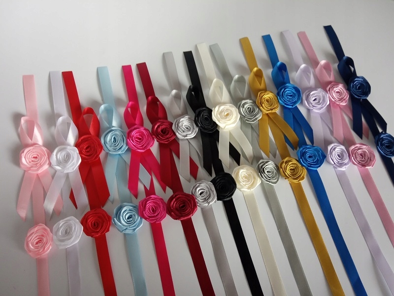 Ozdoba wykonana jest z satynowej różyczki i wstążki.