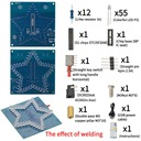 На макетах напечатана Схема монтажа на плате. Нужно обратить внимание на полярность светодиоды более длинная ножка-плюс, большинство элементов имеют описанные параметры на корпусе. Резисторы они могут иметь маркировку полосы их сопротивление и допуск можно прочитать с помощью калькуляторов доступны в интернете или путем измерения с помощью измерителя. в зависимости от макета, мы сначала собираем самые маленькие элементы.