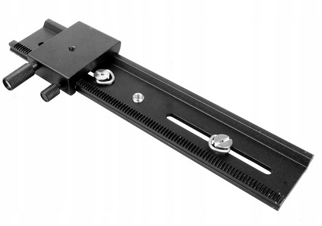 Długa szyna z podziałką macro (two-way) idealnie sprawdzi się w makrofotografii, fotografii technicznej, dokumentacyjnej, a także przy zdjęciach panoramicznych. Pozwala ona na bardzo dokładne ustawienie aparatu (dużo dokładniejsze niż przy pomocy głowicy lub bezpośrednio "z ręki"). Szyna pozwala o przesuwania aparatu o dziesiąte części milimetra.