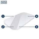 1. волновой профиль, вырезанный на пене с одной стороны матраса, смягчает его до твердость H2 (средней твердости) и улучшает вентиляцию, обеспечивая меньше пота пользователю