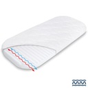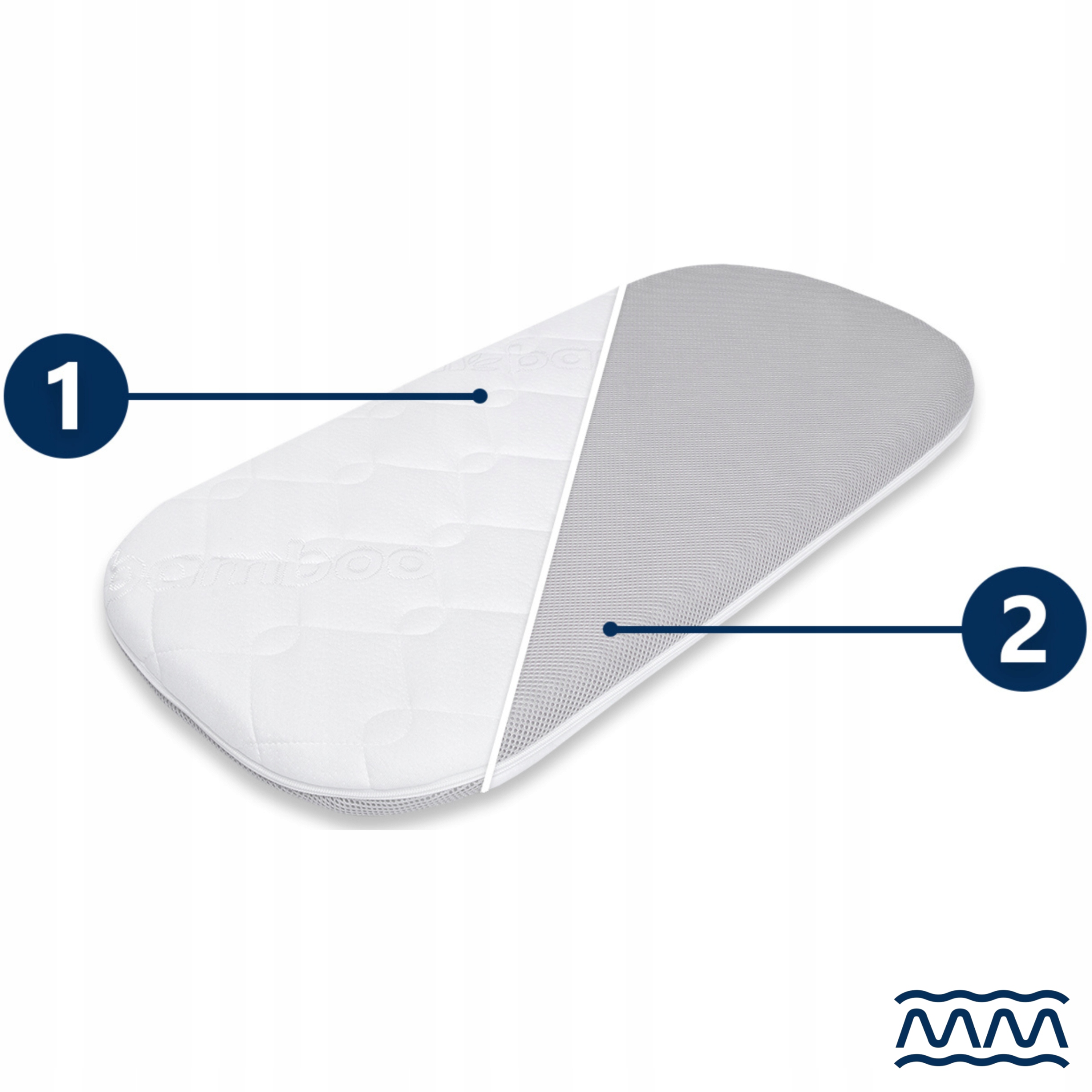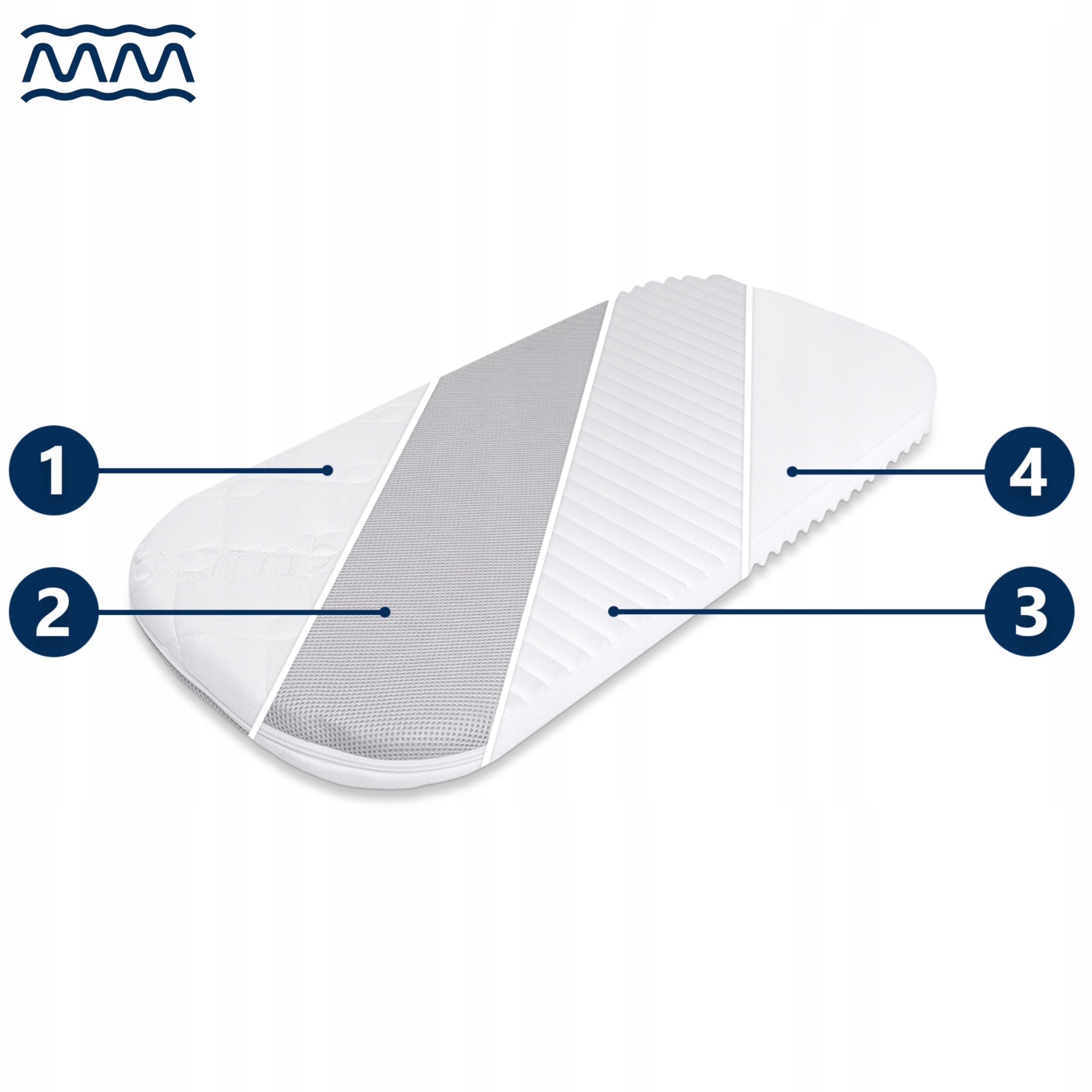 Zwiększona grubość materaca niweluje nierówności pozostawionych pod materacykiem pasów bezpieczeństwa kołyski.
