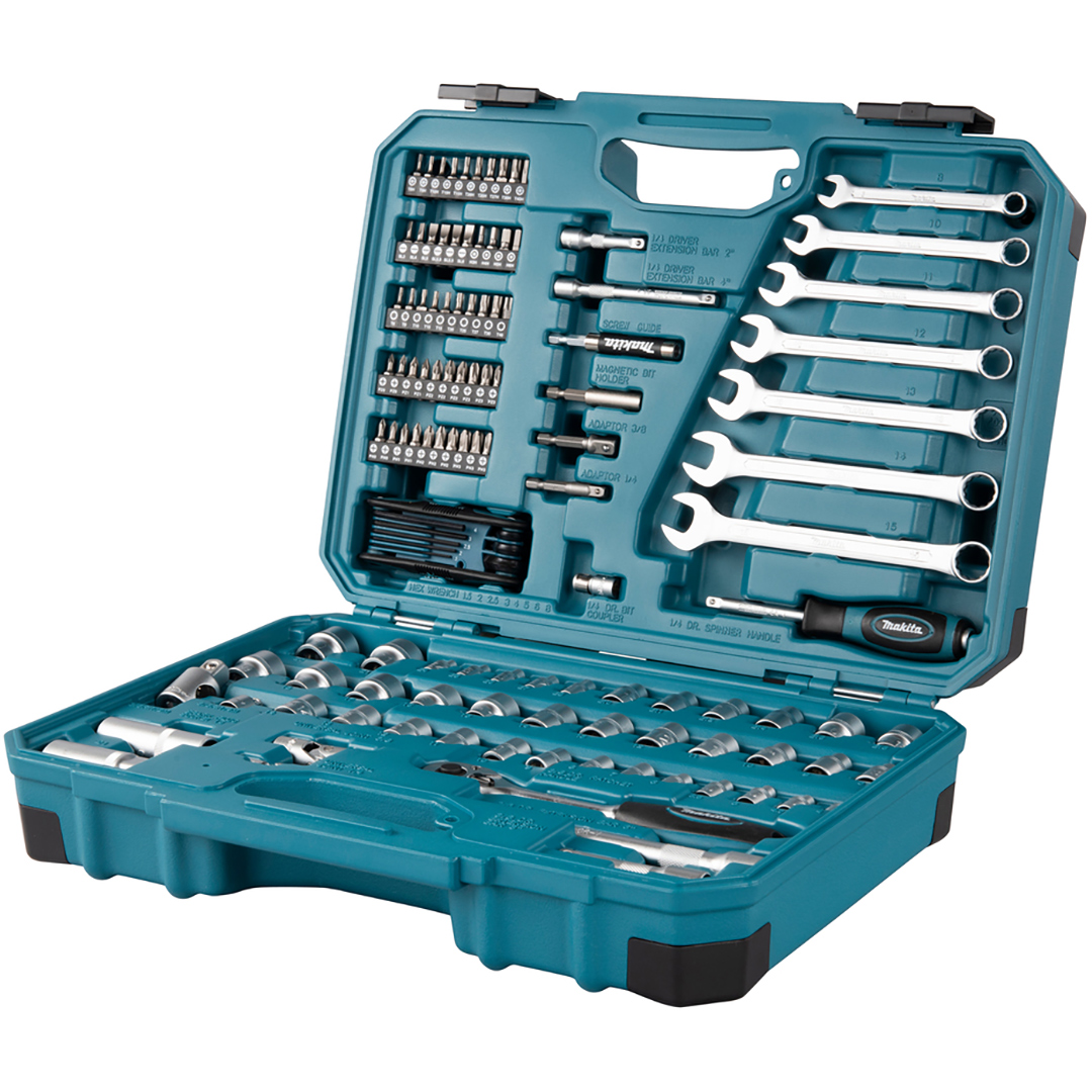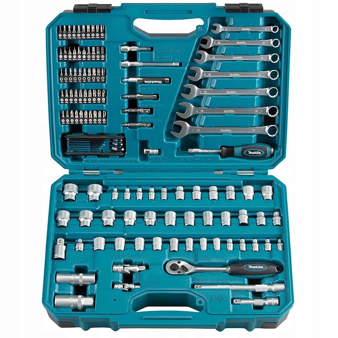 Zestaw kluczy serwisowych E-06616 Makita składa się z 120 elementów. Dzięki szerokiemu wachlarzowi akcesoriów znajdzie swoje zastosowanie w warsztacie, budowie, oraz przy montażu. Narzędzia wykonane są ze stali chromowo-wanadowej, zapewniając trwałość zestawu. Całość jest zebrana w praktycznej walizce wykonanej z tworzywa sztucznego. Poszczególne akcesoria mają swoje indywidualne miejsce w walizce, dzięki czemu łatwo utrzymać porządek i szybko odnaleźć potrzebną rzecz.