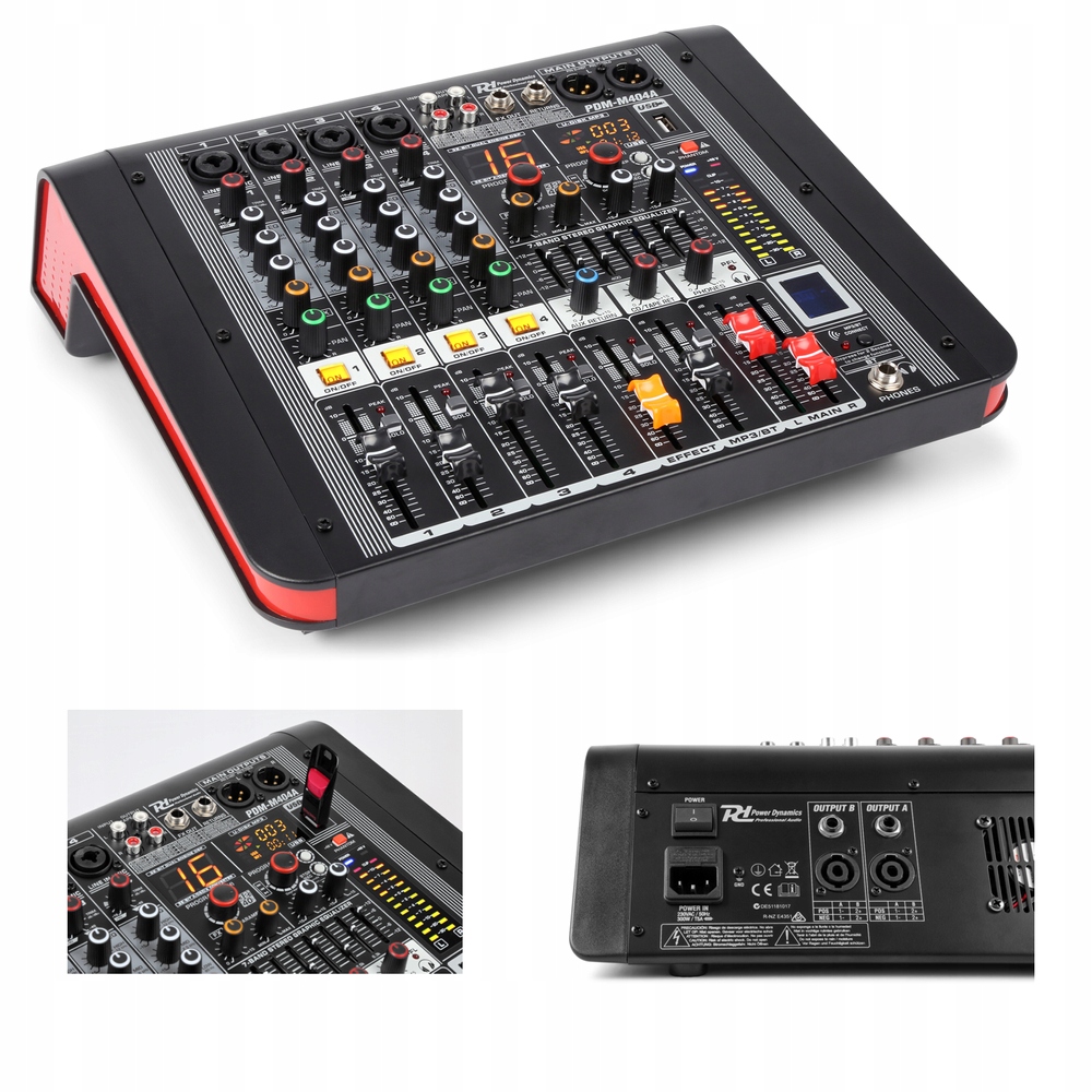 Чтобы сделать его еще проще, PDM-M404A поставляется со встроенным приемник Bluetooth. При установлении беспроводного соединения, например, с телефоном или с помощью ноутбука музыка, воспроизводимая на подключенном устройстве, передается на микшер по беспроводной сети, таким образом, вы можете включить его в окончательный микс. Благодаря встроенному USB MP3-плееру музыка MP3, хранящийся на USB-накопителе, может воспроизводиться непосредственно микшером. Четкий дисплей предоставляет необходимую информацию. При необходимости USB-соединение также можно использовать для запись. Запись записывается в цифровом формате MP3 на USB-накопитель.