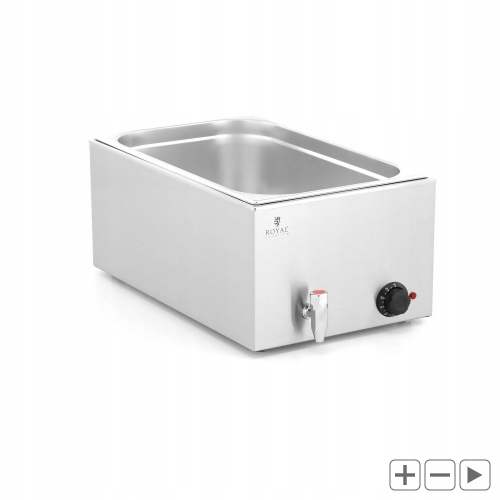 Świeże potrawy utrzymywane w cieple przez długi czas brzmią apetycznie? Z bemarem marki Royal Catering to się uda! W 1 pojemniku GN umieścisz np. mięso, warzywa, ziemniaki, ryż lub sos. Utrzymają żądaną temperaturę bez przypalania. Bemar grzewczy optymalnie zaspokoi potrzeby lokali gastronomicznych nawet wysokiej klasy. Nadaje się do użytku w restauracjach, hotelach, pensjonatach, stołówkach, bufetach, barach z przekąskami, kawiarniach lub domach seniorów i klinikach.