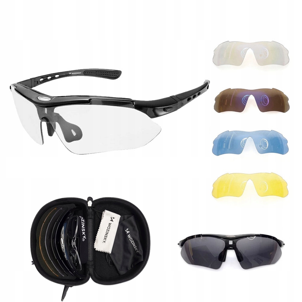 Okulary sportowe Wozinsky WSG-B01 zostały wyposażone w aż 5 odmiennych, wymiennych szkieł. Każde z nich zostało opracowane tak, by sprawiło się przy konkretnych warunkach atmosferycznych. Podstawowe – czarne zapewnią jeszcze lepszy kontrast, a przede wszystkim skuteczną ochronę przed promieniami UV-A oraz UV-B. Wymienne szkła występują w kolorach: