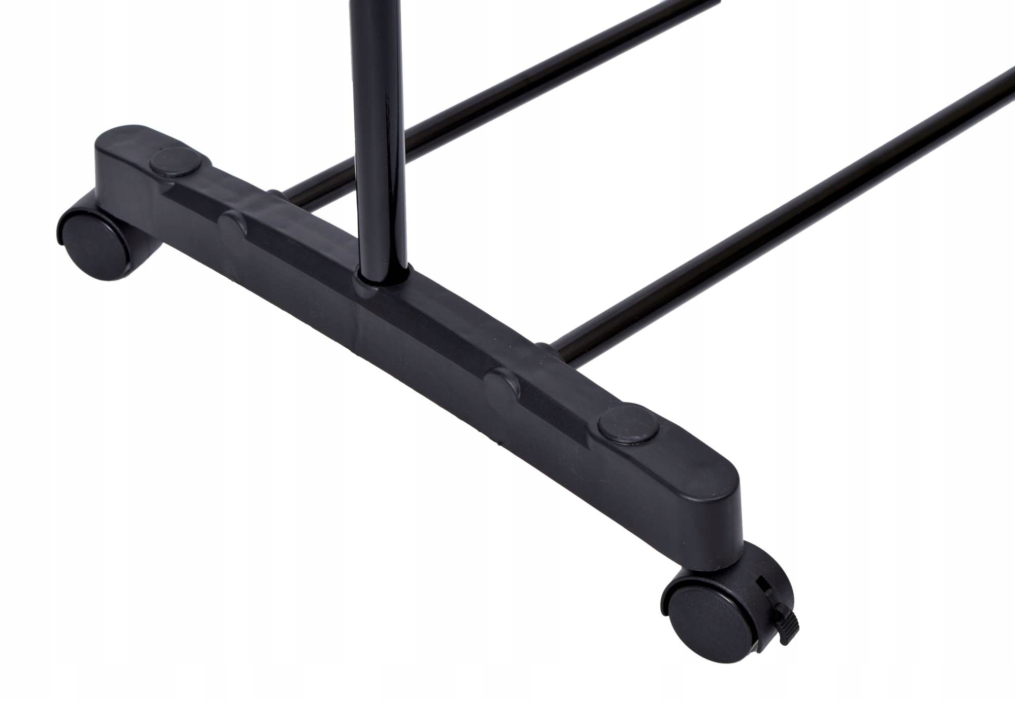Praktyczny i wytrzymały wieszak garderobiany na kółkach z półką na buty. Dzięki pokrętłom możesz dostosować wysokość wieszaka do swoich potrzeb.