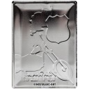 Wykonana z wytrzymałej i sztywnej blachy w rozmiarze 30x40cm. Pomalowana odporną na ścieranie farbą i dodatkowo zabezpieczone lakierem ochronnym. Kształt kopuły oraz motywu jest wytłoczony . Pakowane w opakowanie foliowe. Na tablicach-szyldach pojawiają się różne motywy tematyczne, każdy z nich ma inne znaczenie lub jest historią znanej światowej marki. Produkty NOSTALGIC-ART zawsze mogą być udanym prezentem dla Twoich znajomych lub kogoś bliskiego.Zdjęcia wytłoczeń są poglądowe.