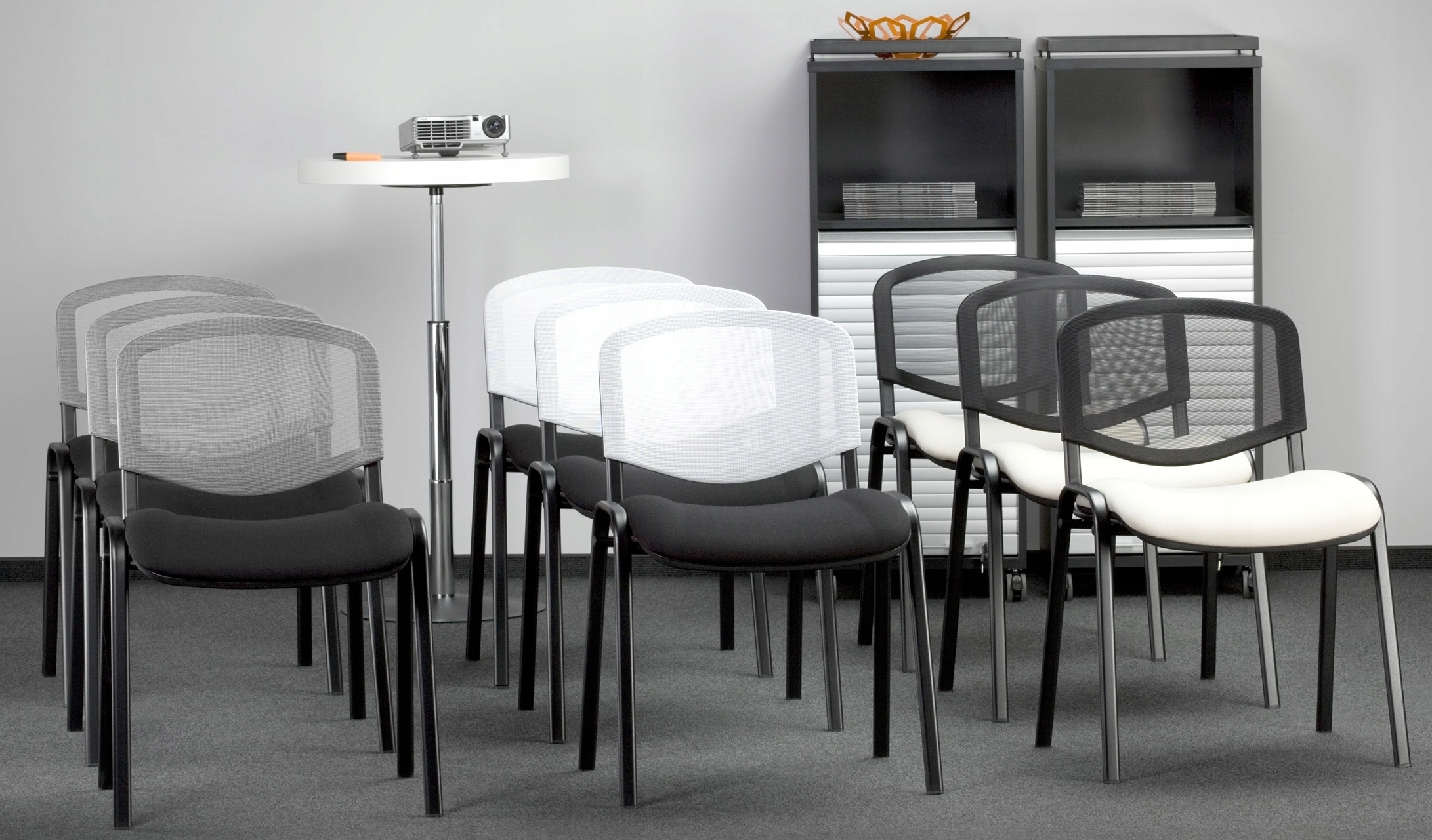 Bardzo popularne krzesło konferencyjne ISO firmy Nowy Styl. Oparcie i siedzisko tapicerowane wytrzymałą tkaniną Basic w kolorze CZARNYM (C11). Stelaż metalowy, lakierowany na czarno (RAL 9005, matowy). Tył oparcia wykonany z czarnego tworzywa sztucznego. Możliwość sztaplowania (składania) w stos do 10 sztuk. Krzesła można łączyć w szeregi za pomocą łączników Iso Link (akcesoria dodatkowe za dopłatą).