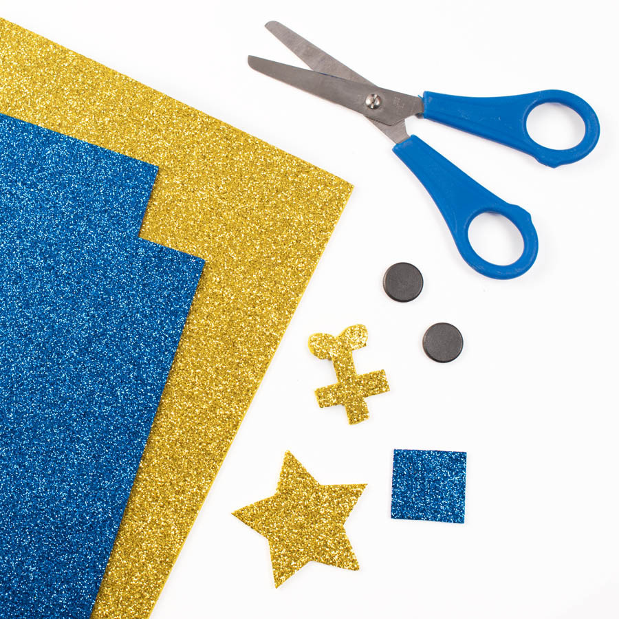Wytnij gwiazdę na górę i małą paczkę miękkich prezentów z pianki EVA( również dostępnych w sklepie). Przymocuj magnes z tyłu opakowania.