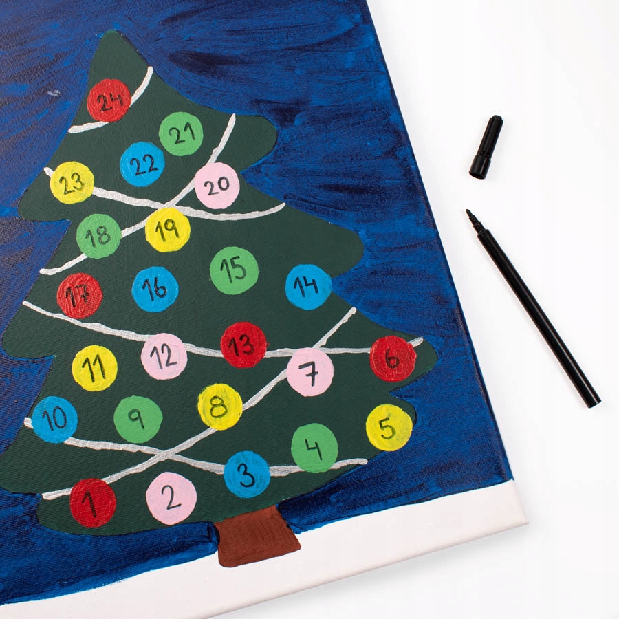 Udekoruj drzewko brokatem i 24 kulkami.