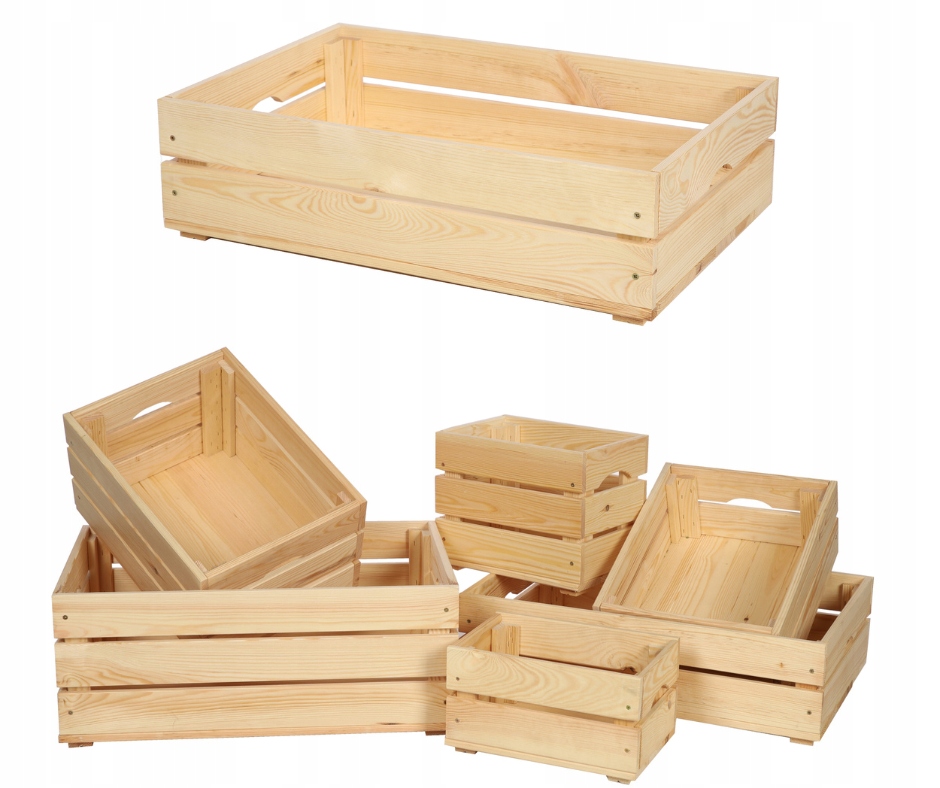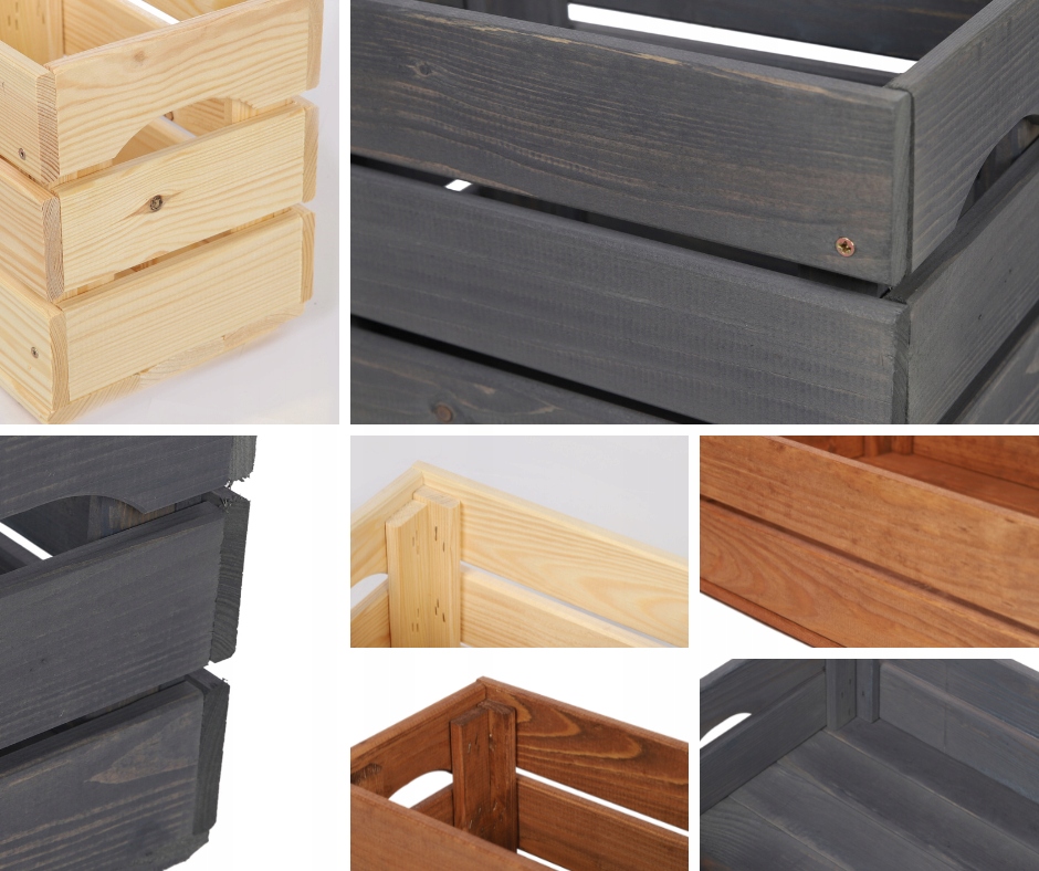 Duża skrzynia drewniana z serii SD, która obejmuje 6 wariantów wielkości oraz trzy rodzaje wykończenia skrzynek.