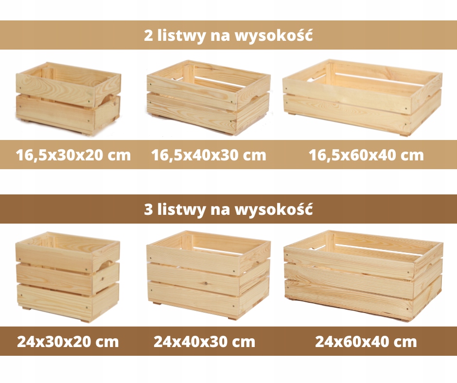Na spodach skrzynki zaopatrzone są w dwie listwy.