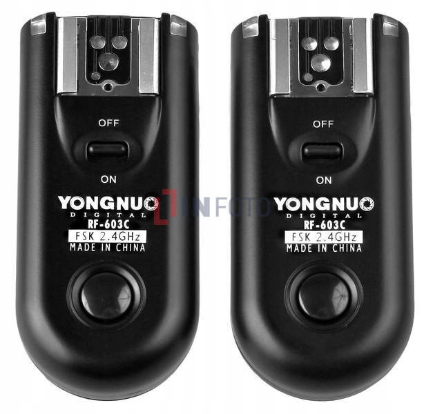 Yongnuo RF-603 II pozwalają na bezprzewodowe, radiowe sterowanie aparatem oraz wyzwalanie lamp systemowych oraz studyjnych z odległości nawet 270m. Posiada funkcję pilota radiowego do wyzwalania aparatu. Pracuje na częstotliwości 2,4 GHz oraz posiada możliwość ustawienia aż 16 kanałów, co gwarantuje niezawodną pracę urządzenia w każdych warunkach.