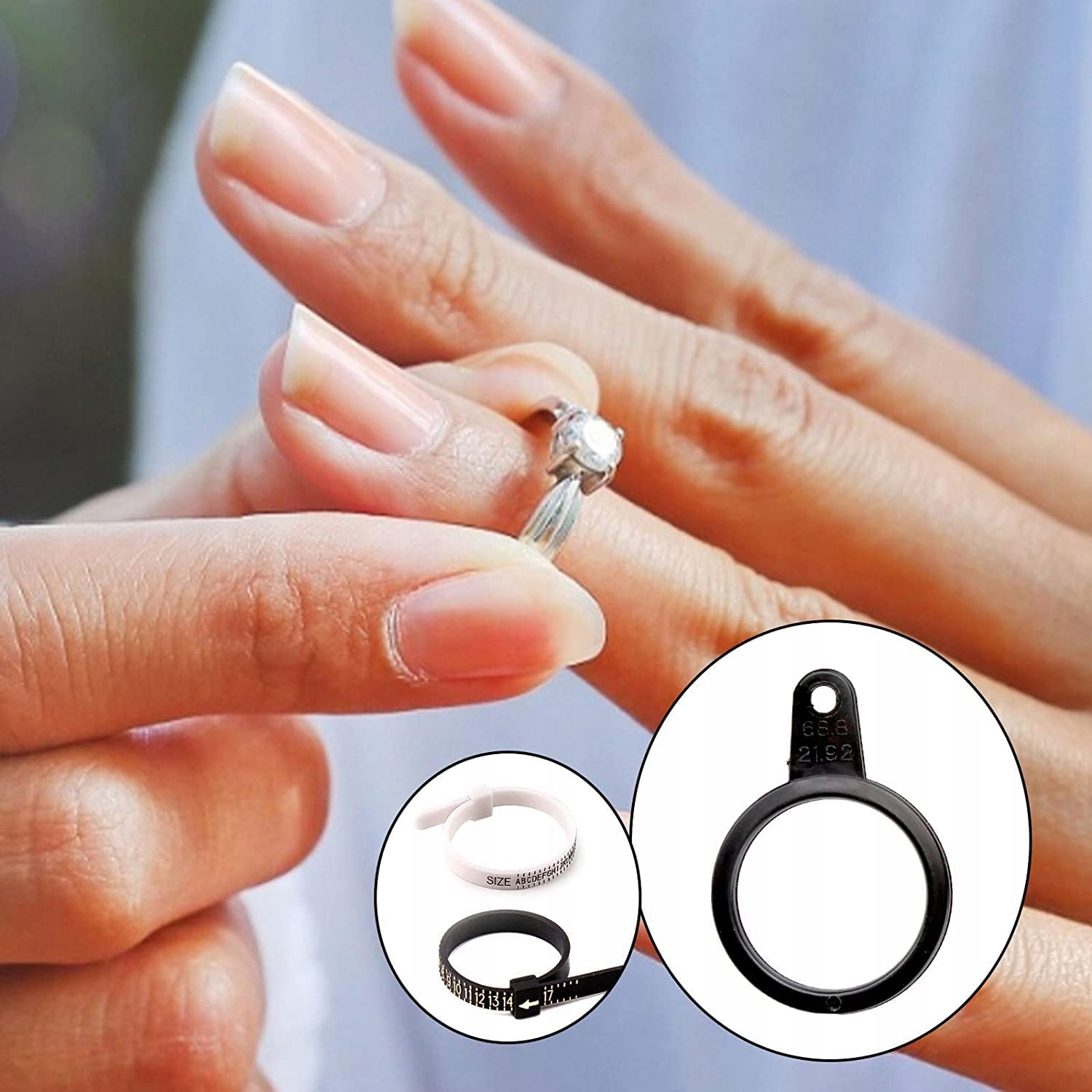 Miarka jubilerska jest bardzo pomocna przy ustalaniu rozmiaru pierścionka. Miarka umożliwia dokładny pomiar obwodu palca.