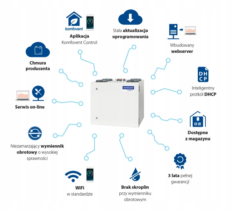 ✔️ возможность бесплатного использования приложения мобильный Komfovent Control ,✔️ модуль Wi-Fi, для беспроводного подключения к