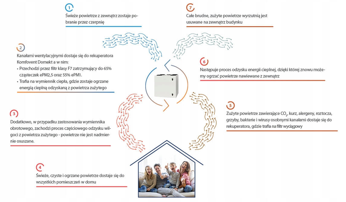 ✅ Wysoka, całoroczna sprawność odzysku ciepła (85%), nawet przy temperaturach poniżej -20°C na zewnątrz.