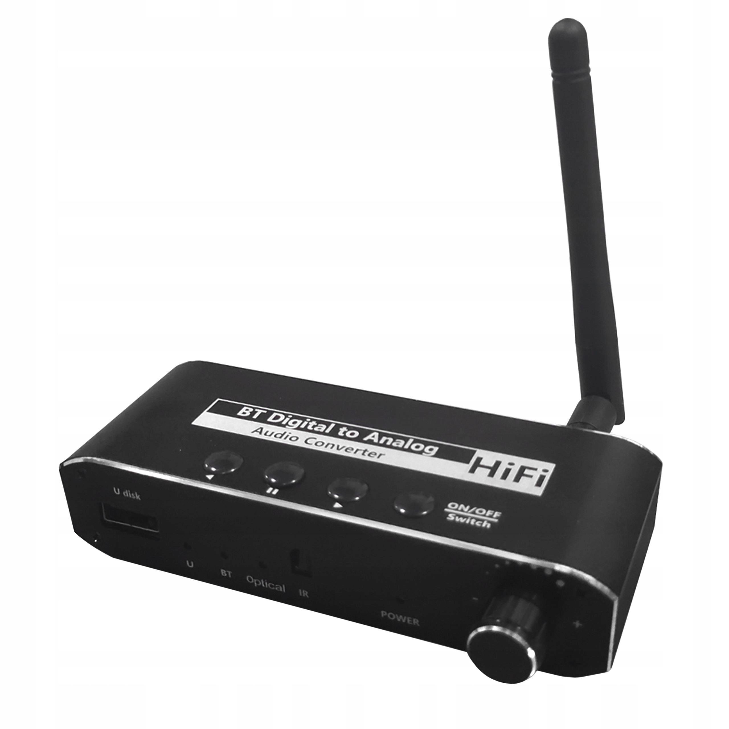 Konwerter jest zasilany poprzez gniazdo USB typu C, a dołączona antena Bluetooth zapewnia zasięg bezprzewodowy do 20 metrów.